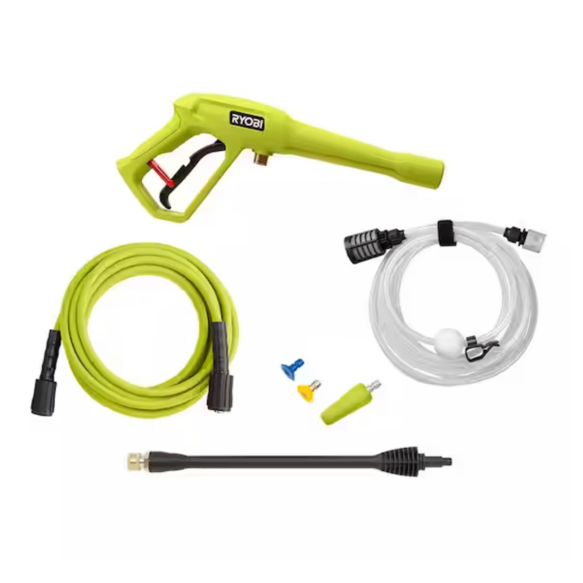 - Included accessories: 25 ft. hose, 15° nozzle, soap nozzle, turbo nozzle and 10 ft. siphon hose
