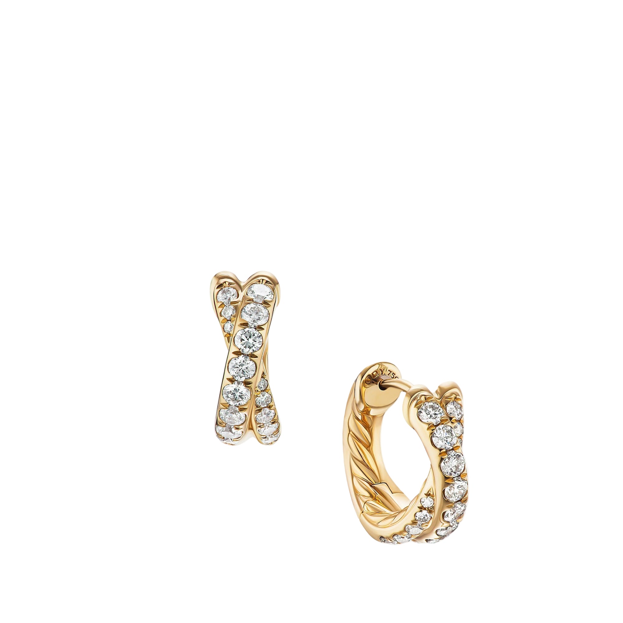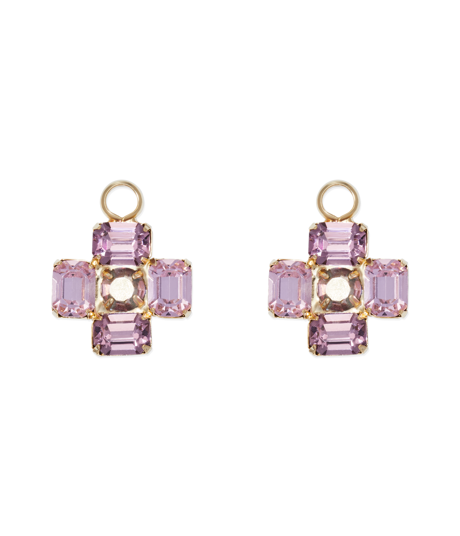 Dress up your huggie hoops with our sparkling huggie charms, designed for mixing, matching and layering. The styling possibilities are endless. Features hand-set crystal stones. 18K gold finish over brass.